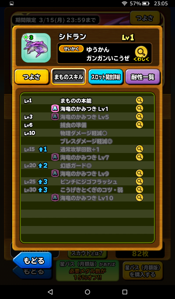 星ドラのモンスター闘技場2021年3月のスペシャルスカウトの海竜は見送ることにしました。